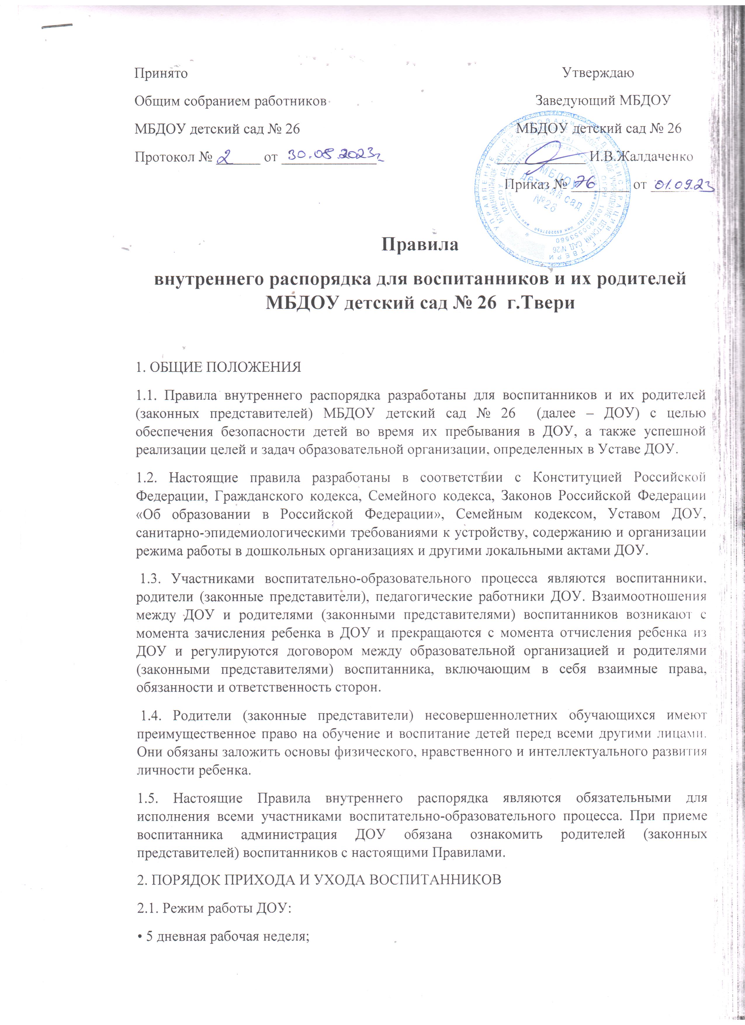 Жалдаченко Ирина Викторовна, Заведующий МБДОУ детский сад № 26 Телефон: +7 482 255-66-52 E-mail: ds26@detsad.tver.ru