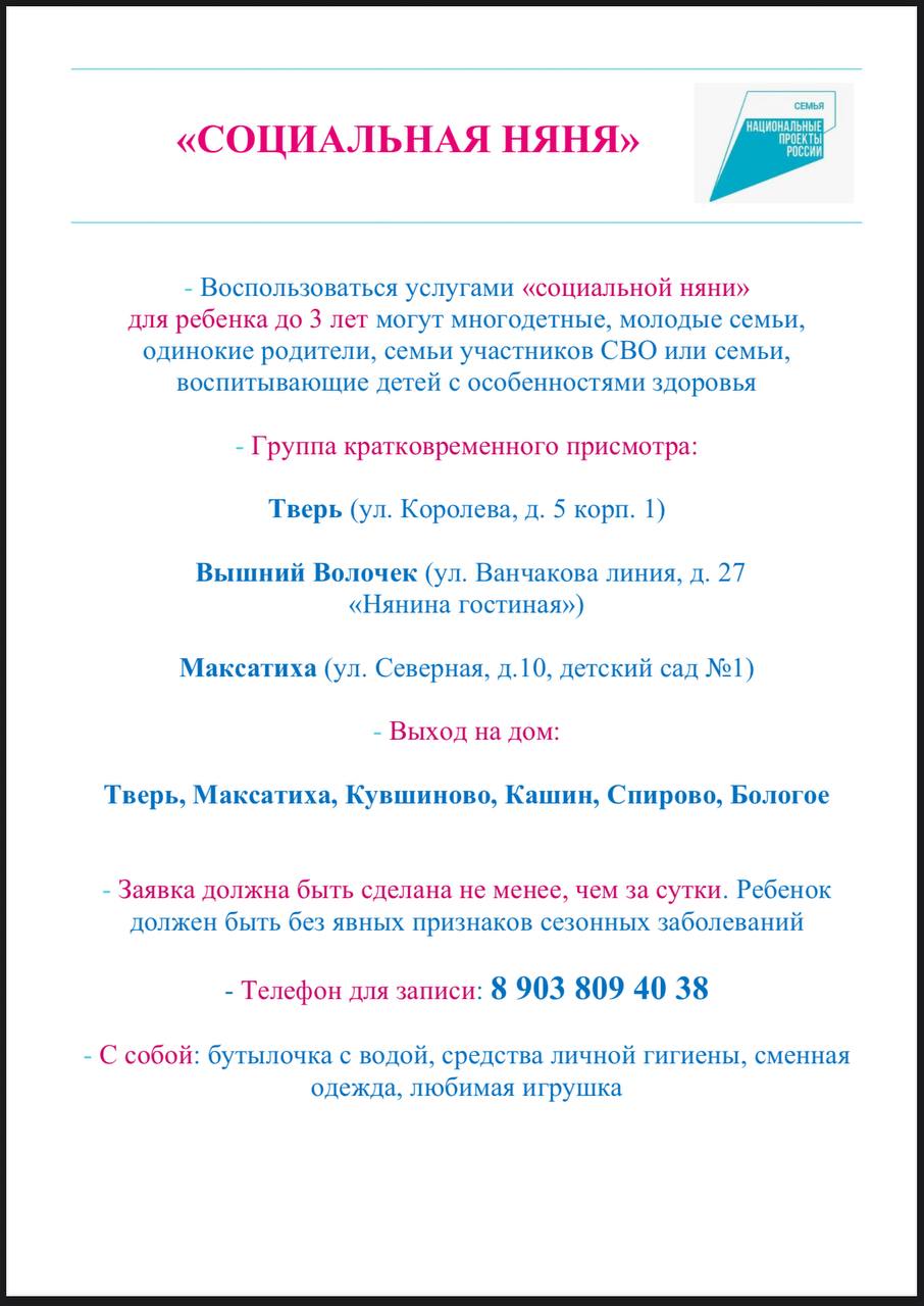 Новая мера поддержки в Тверской области "Социальная няня"
